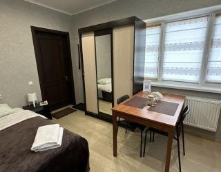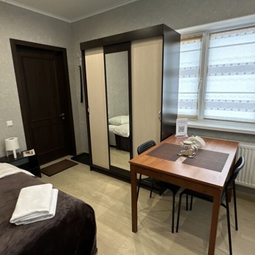 Трехэтажное здание отеля занимает небольшую собственную территорию, в вечернее время, украшенную иллюминацией. К услугам гостей – апартаменты разных категорий комфорта, есть варианты с отдельным входом. Каждый номер оснащен мини-кухней и санузлом с душем, в комнатах – двуспальные или односпальные кровати, плазменный телевизор, сеть wi-fi.