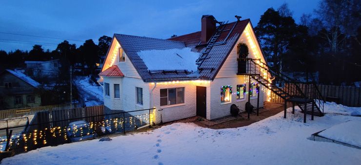 В распоряжении отдыхающих – мангал на придомовой территории, на цокольном этаже оборудована сауна с печью Harvia. В числе удобств – возможность заселиться с питомцем.